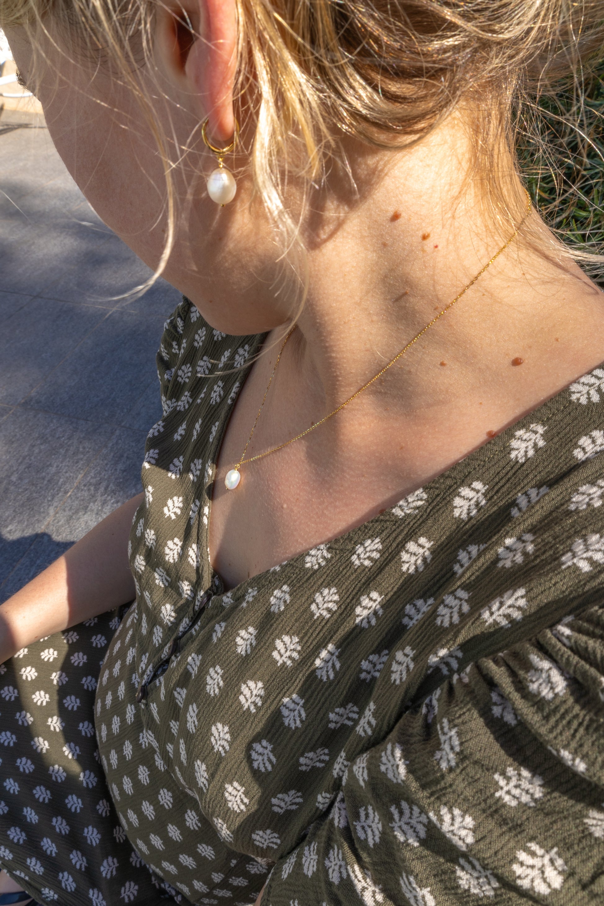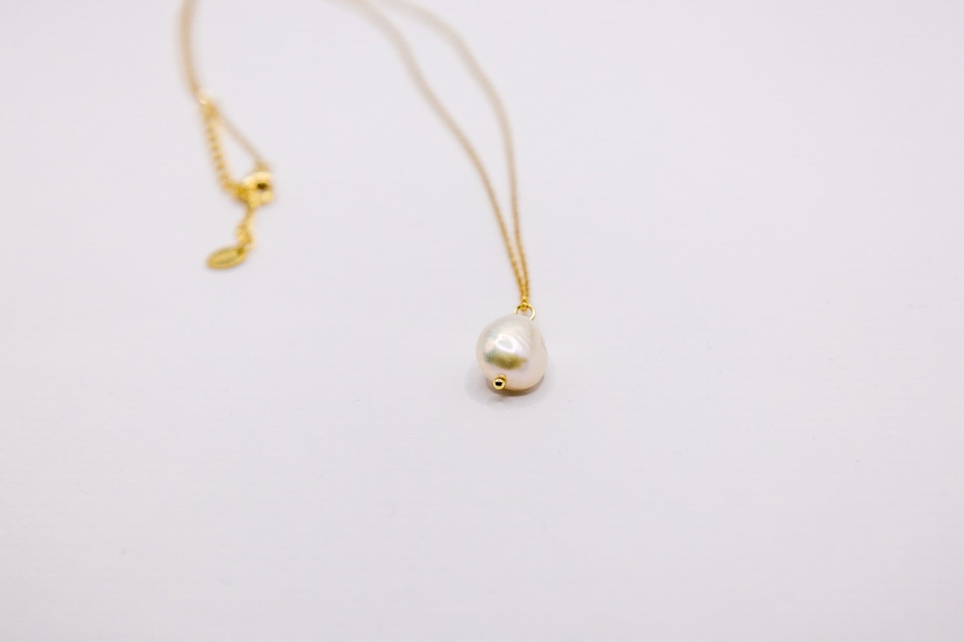 Diese elegante Halskette aus feinem, vergoldetem Kettchen setzt mit einer großen, schimmernden Perle einen edlen Akzent. Die warme Goldnuance harmoniert perfekt mit der strahlenden Perle und macht diese Kette zu einem wahren Blickfang. Ideal für besondere Anlässe oder als stilvolles Highlight für deinen Alltag.