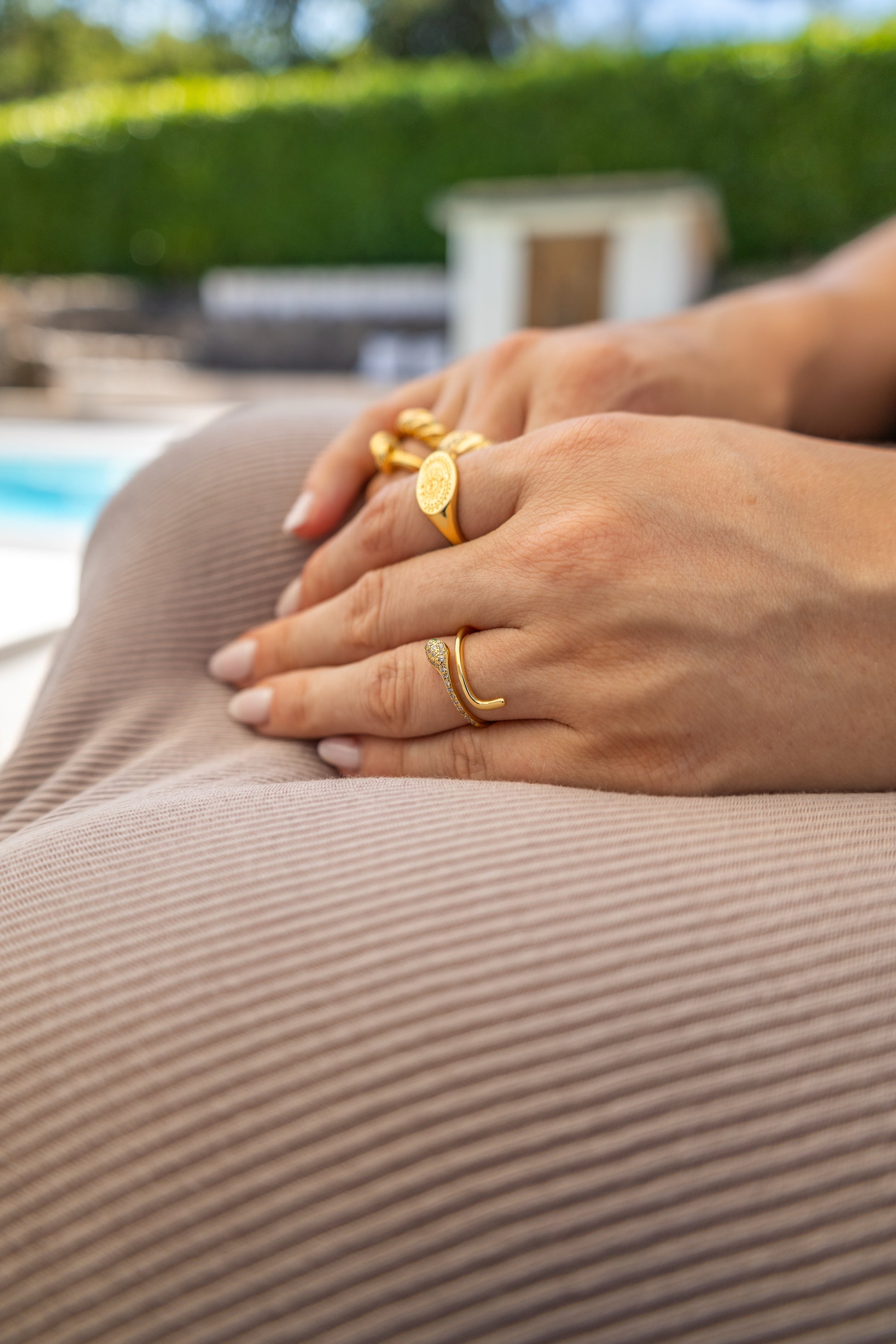 Dieser elegante Statement-Ring aus vergoldetem 925 Sterling Silber besticht durch seine geschwungenen Linien und das harmonische Design. Die fließende Form symbolisiert Bewegung und Eleganz, während die warme Vergoldung für einen Hauch von Luxus sorgt. Ein perfektes Accessoire für moderne Frauen mit Stil.
