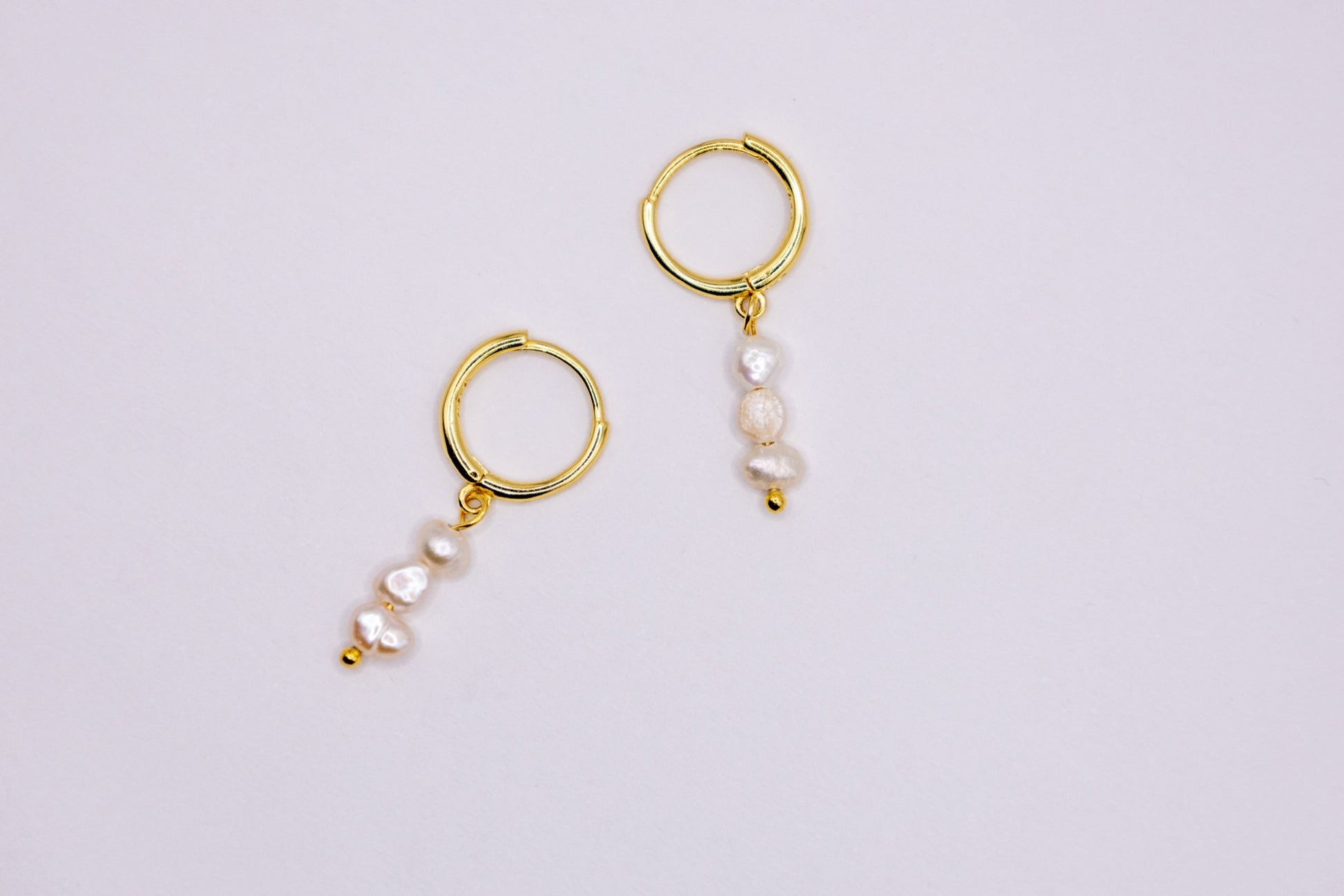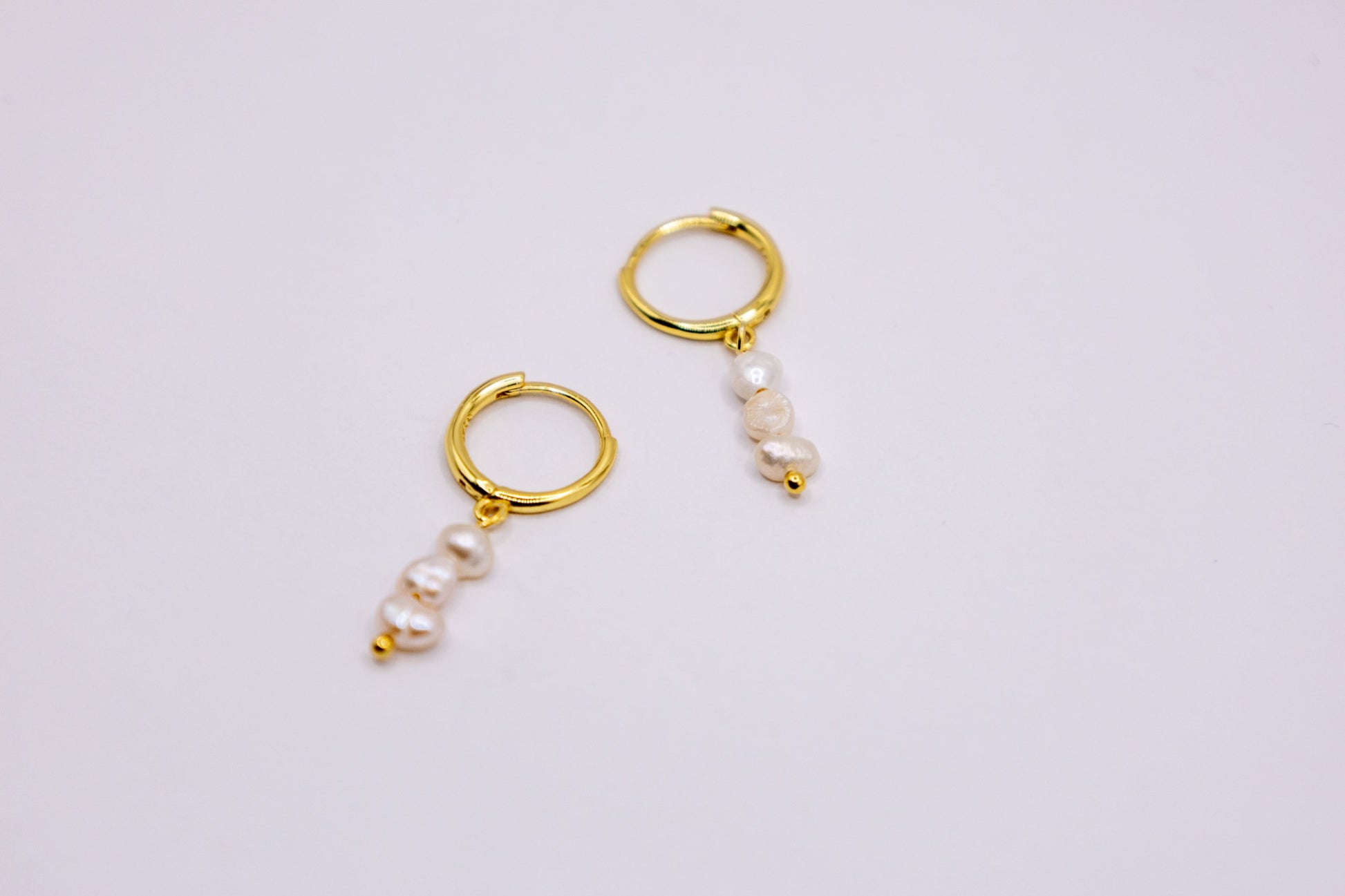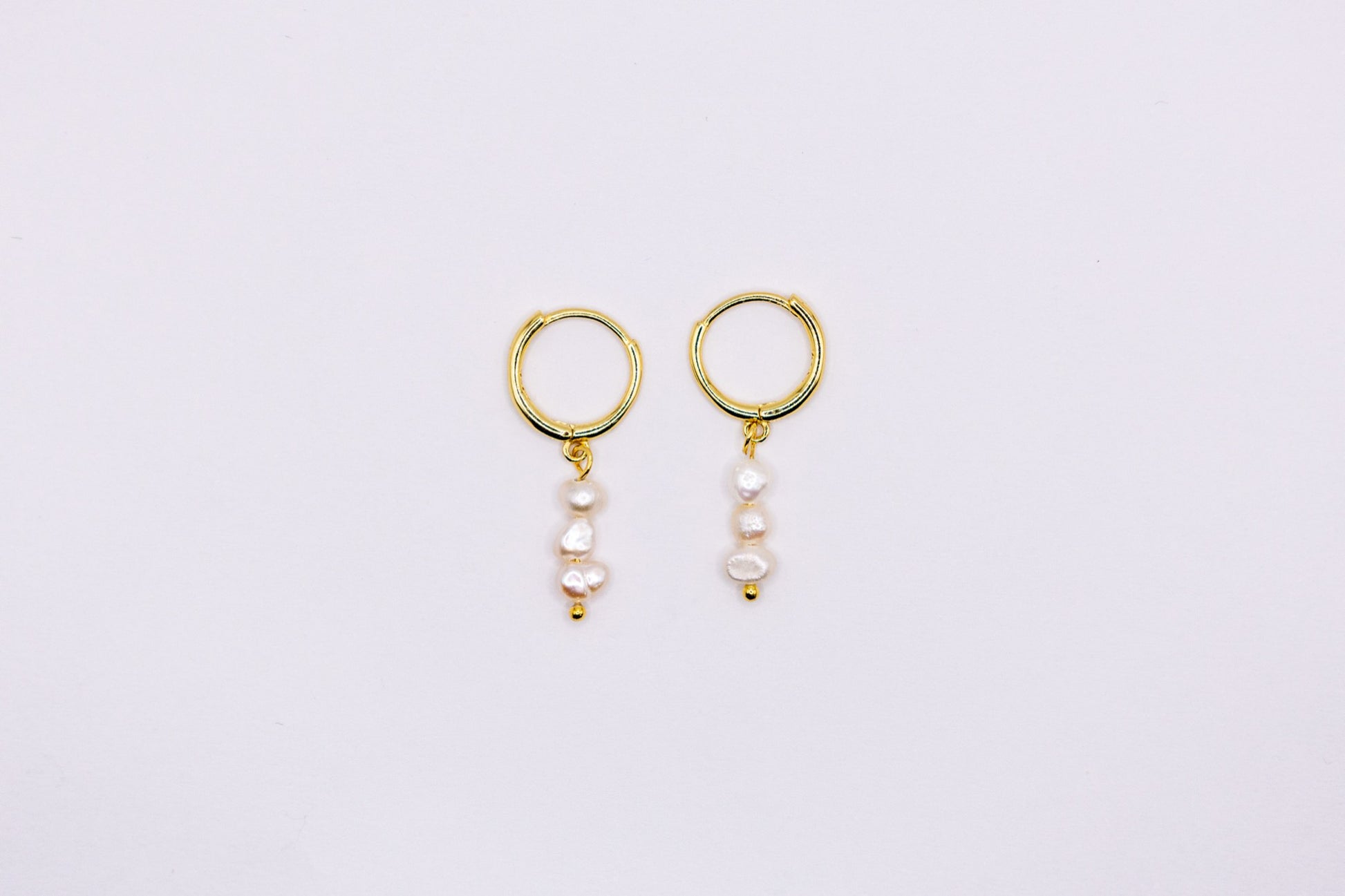 Hängende Gold-Ohrringe mit drei Perlen