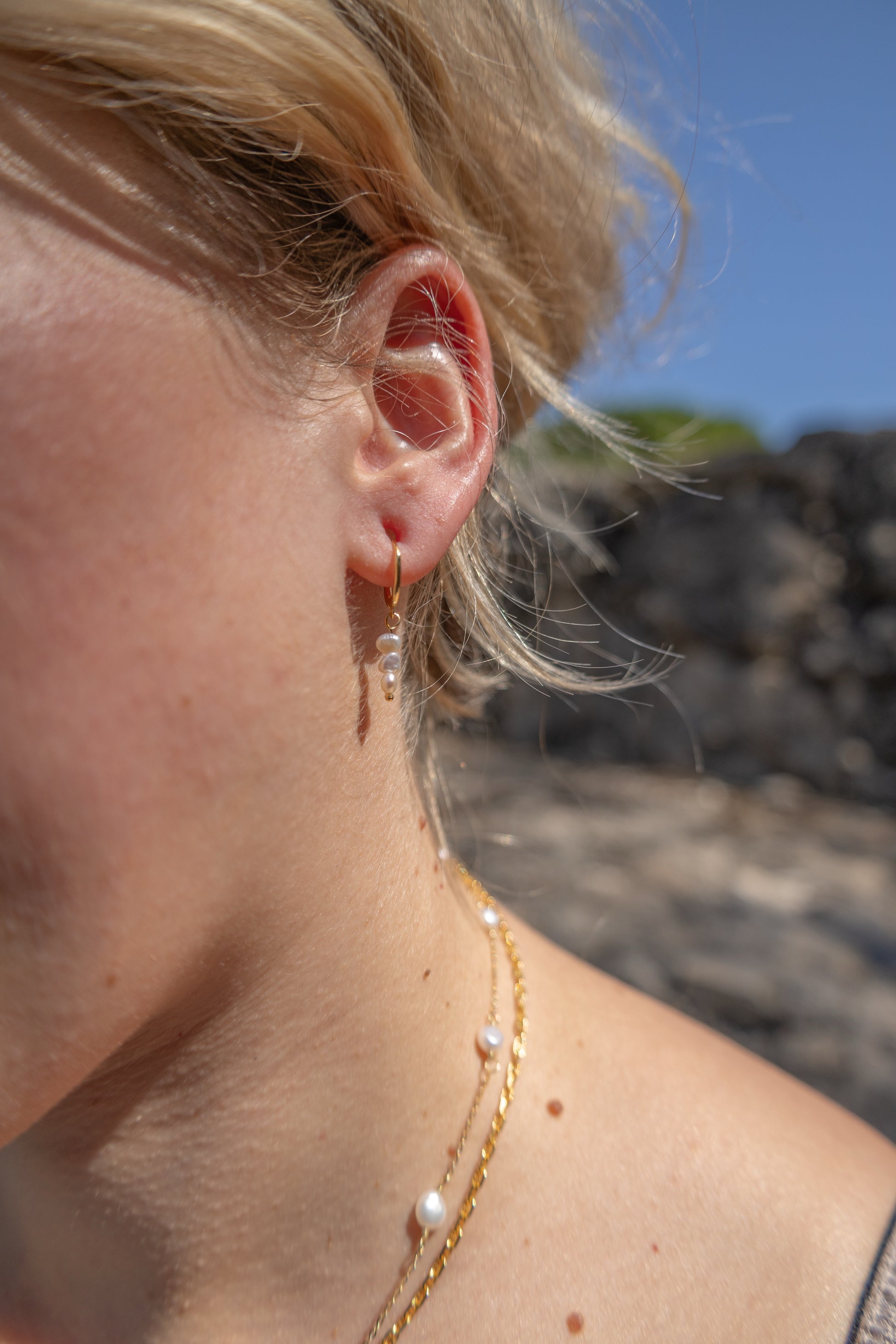 Diese bezaubernden Ohrringe aus vergoldetem 925 Sterling Silber bestechen durch ihr filigranes Design mit drei aneinanderhängenden, kleinen Perlen. Die sanft schimmernden Perlen fallen elegant herab und verleihen jedem Look einen Hauch von Romantik und Raffinesse. Perfekt für besondere Momente oder als feminines Accessoire für den Alltag.