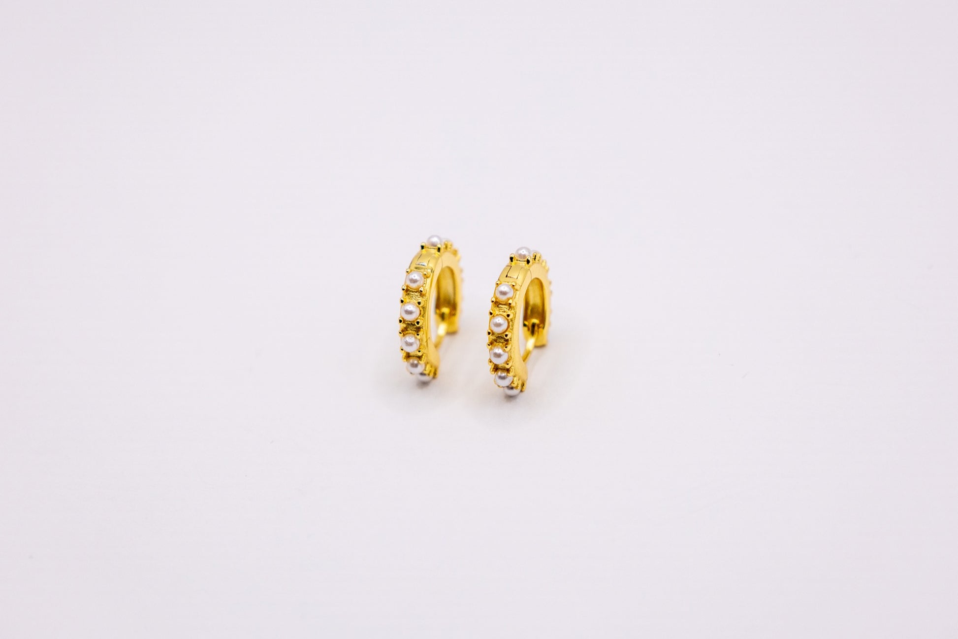 Kreisförmige Perlen-Ohrringe – Vergoldet mit rundum schimmernden Perlen