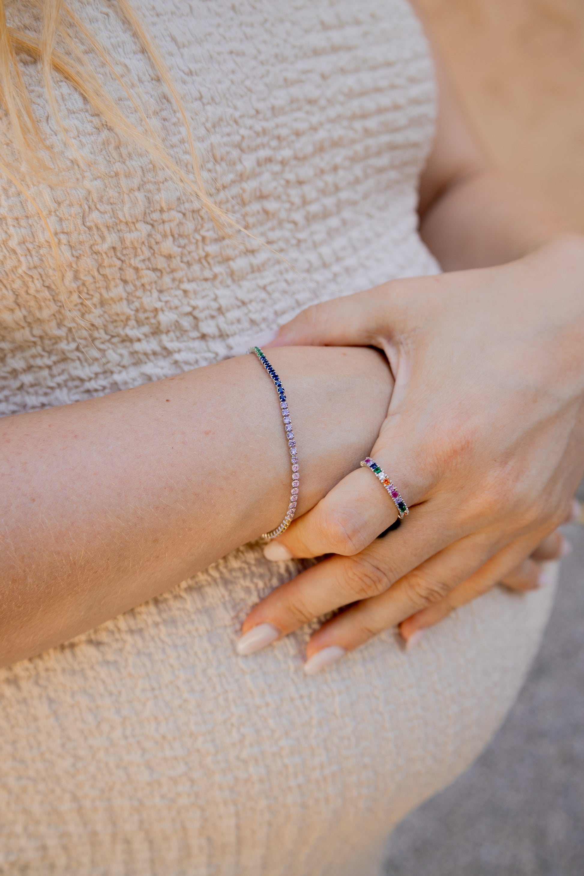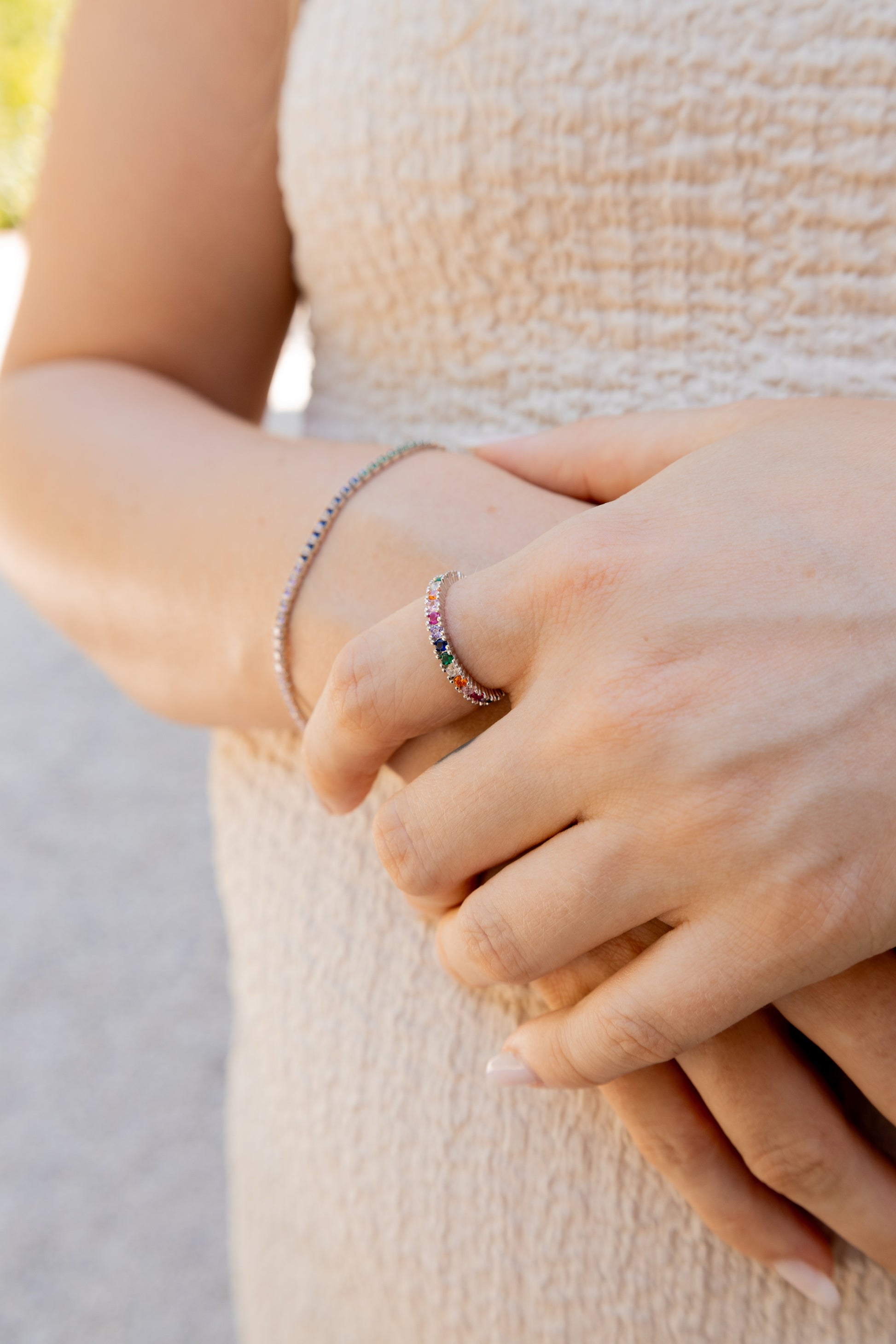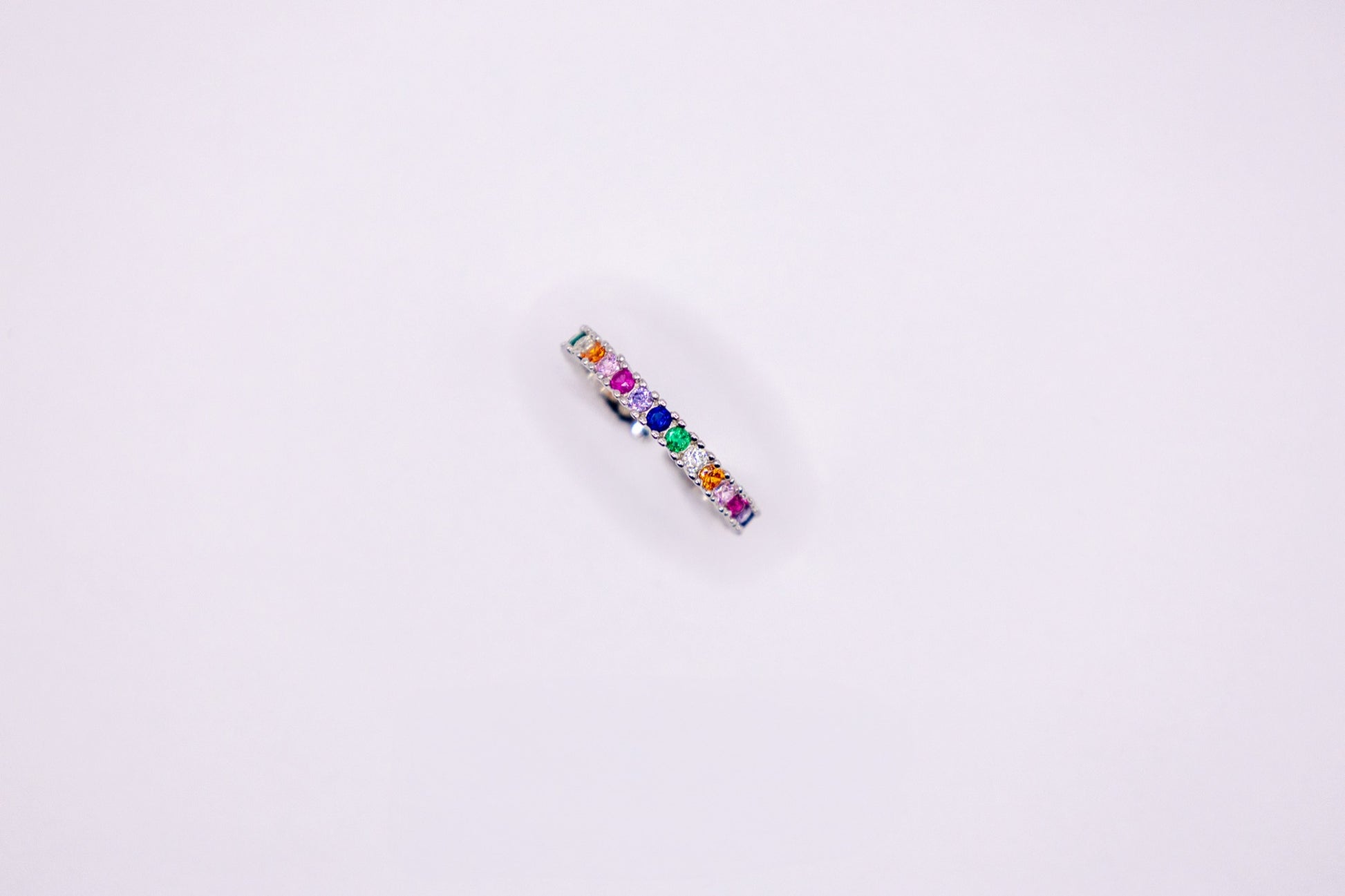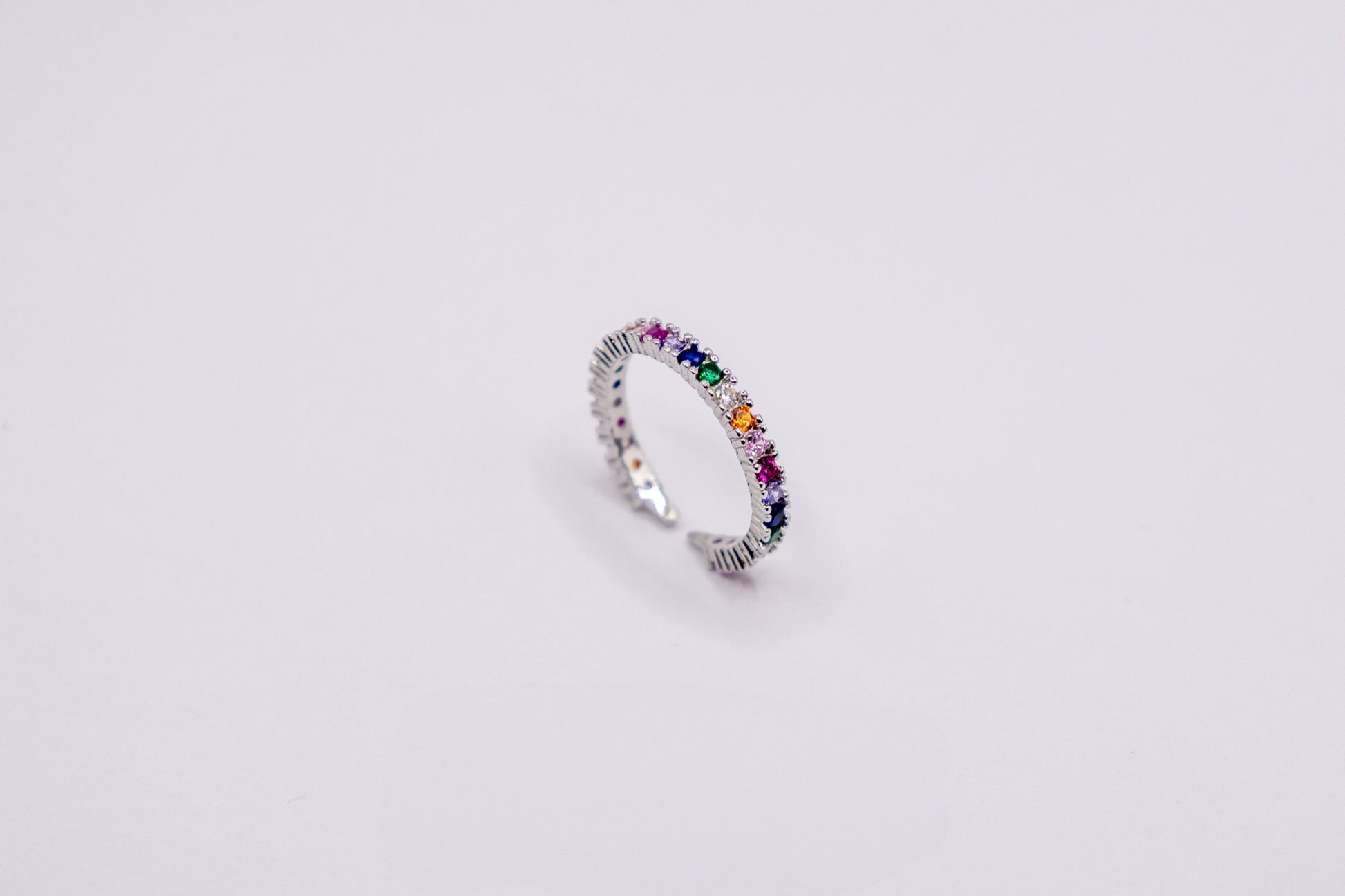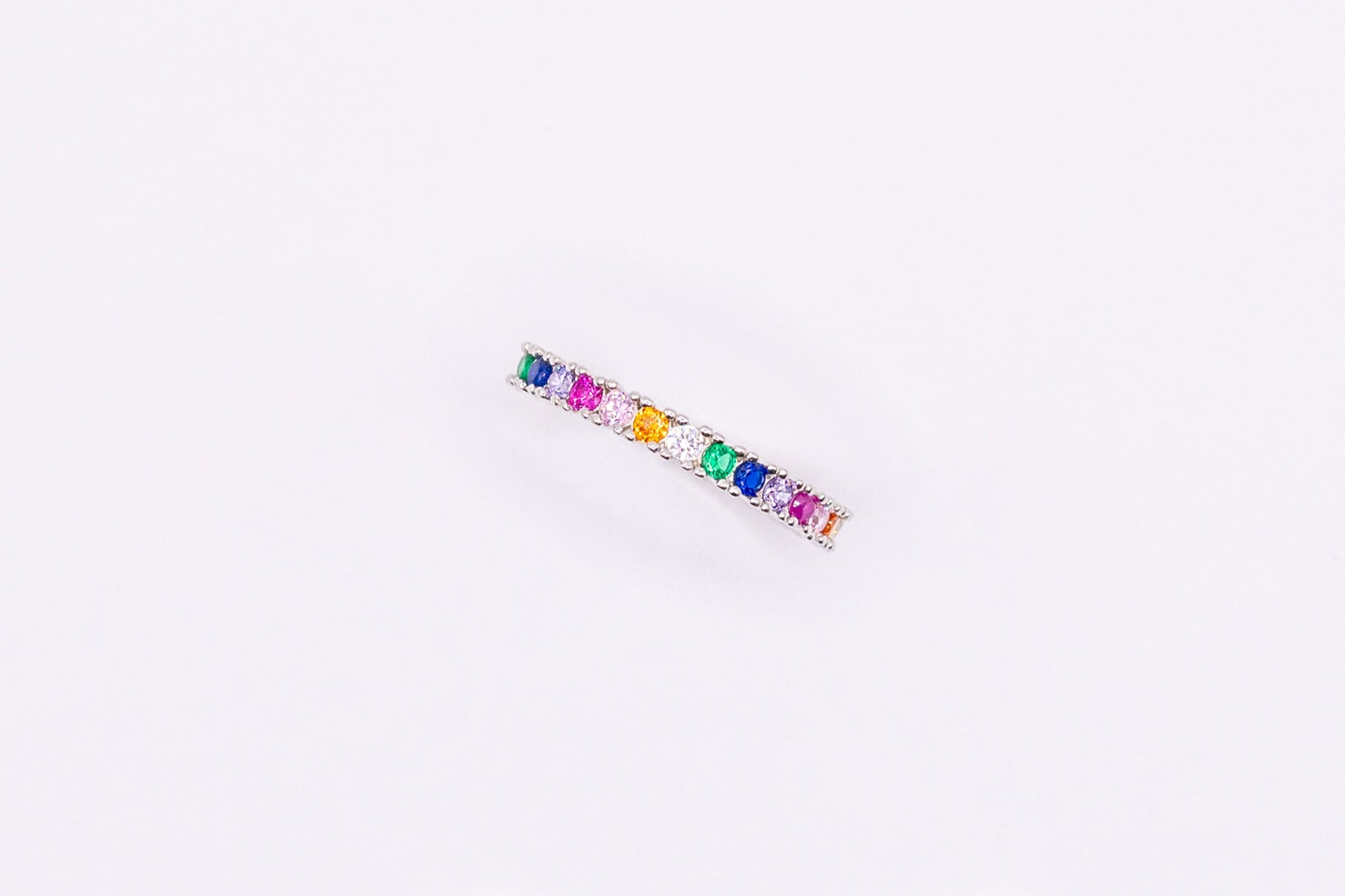 Schimmernder Regenbogen-Ring aus 925 Silber und mit Zirkonia-Steinen