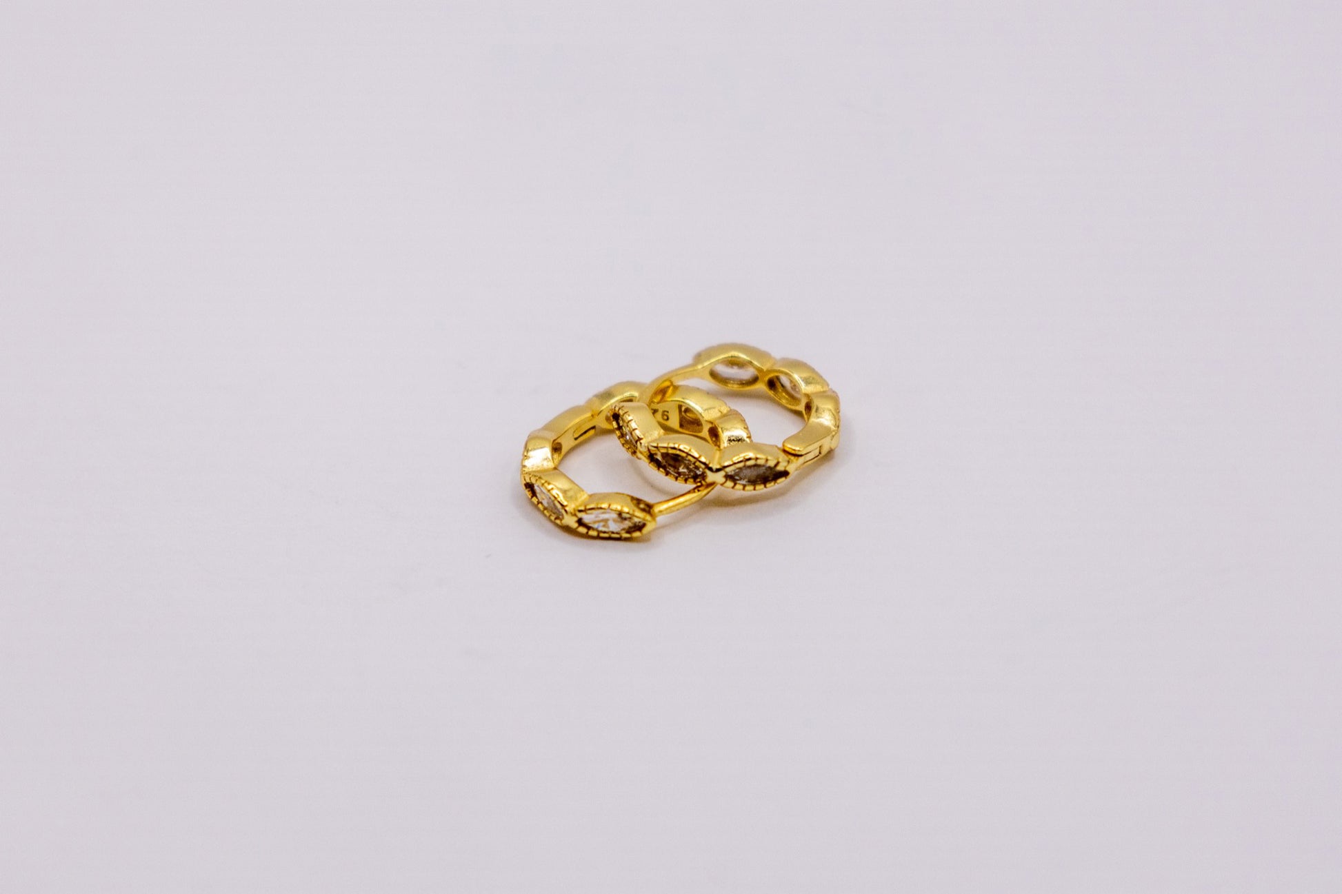 Diese einzigartigen Ohrringe aus vergoldetem 925 Sterling Silber begeistern durch ihr Design mit ovalförmigen Abschnitten rundum. Die harmonische Kombination aus glänzendem Gold und dem modernen Muster verleiht diesen Ohrringen eine besondere Eleganz. Perfekt für Frauen, die mit außergewöhnlichem Schmuck glänzen möchten – ob im Alltag oder bei besonderen Anlässen.